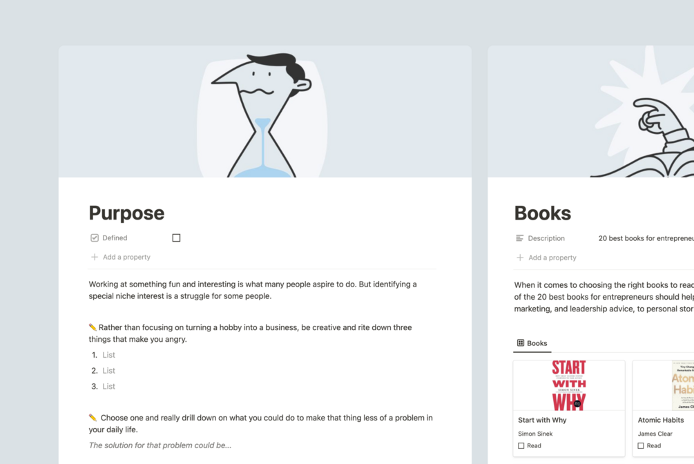 The start of an entrepreneurial journey is not easy, which is why The Notion Entrepreneur Kit was created. Inside, you'll find a list of 20 best books, 30+ podcasts, 20 courses, 100+ quotes, 120+ tips, 20+ people to follow, and 40+ questions that will help you have a clear vision of where you're going and how you are going to succeed.