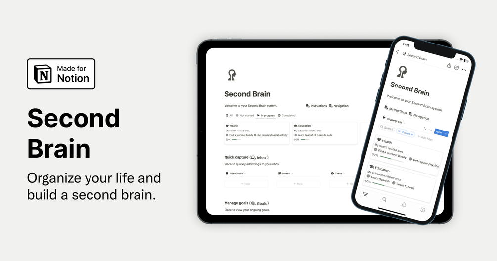 Notion Second Brain helps you capture-organize your tasks, notes, projects, resources and goals inside one all-in-one streamlined system.